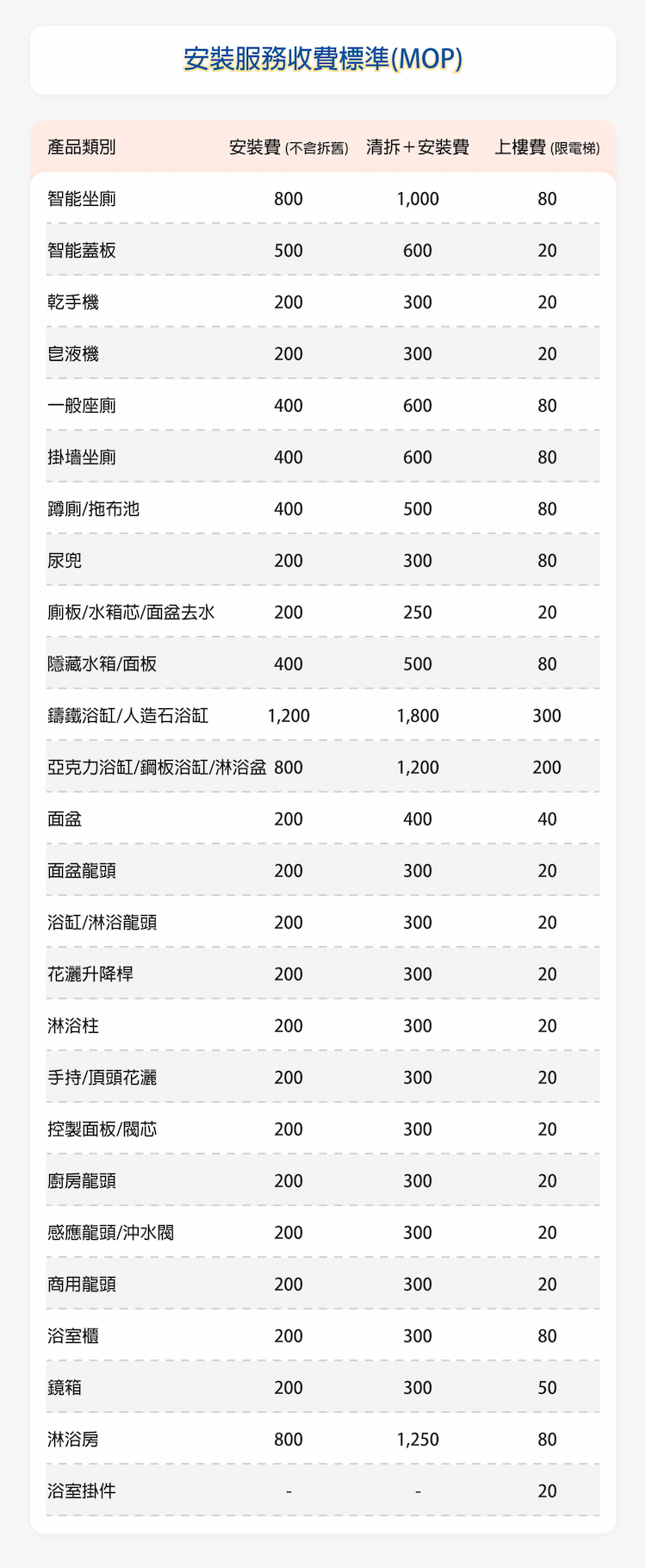 8.以上資料價目如有更改,怒不另行通知,安裝價目以最後報價為準。